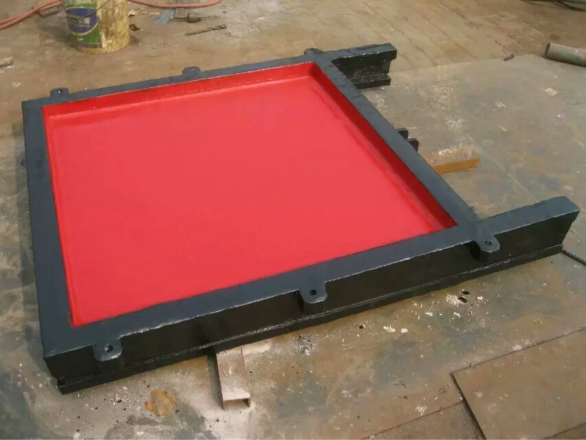 铸铁闸门,由闸板、闸框、吊座、压板、紧闭压板、地脚螺栓、标准件等部件组成。铸铁闸门在启闭机升降的作用下,使闸板在闸框滑道内上、下滑动,能部分或全部的开启和关闭过水孔口。在水柱的压力下,强迫闸门向下游位移,紧靠在闸框止水面上,保证止水效果良好,达到调节流量和控制水位的目的。