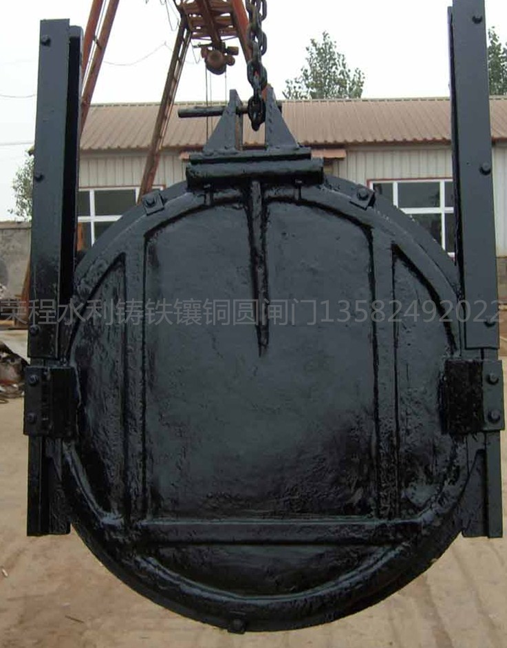 铸铁镶铜圆闸门是公司生产的20多种闸门中的一种闸门,耐腐蚀,抗氧化,该设备以铸铁为原料生产,具有耐腐蚀性,可在PH=6~8的流体酸碱中使用,止水效果好,安装简单,使用寿命长等特点,有单、双向止水,止水采用精加工后自身或镶铜、不锈钢等方式止水。其规格型号有:平板平面铸铁闸门、弧形平面铸铁闸门,手提式铸铁闸门、机闸一体式闸门、封闭式铸铁闸门、组合式铸铁闸门、叠梁闸门、整体折叠拍门(分方形拍门和圆形拍门)、潮门(作为排水管出口处的单向阀用,具有自动关闭功能,防止江河潮水倒流)、高水头潜没式铜止水高压闸门可用于深水涵洞,可倾斜安装,斜拉使用,止水采用铜板止水,根据客户需要选择单双镶铜。